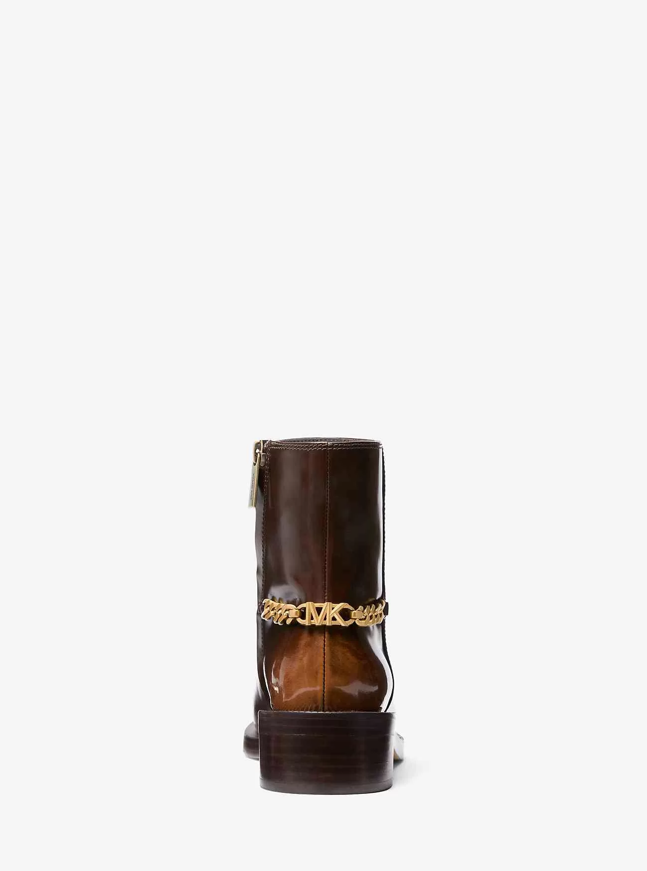 Klassisk ridstil är alltid på trenden, och vår Carlisle-känga gör det lätt att gå promenaden. Det ankelbetande paret är tillverkat av glänsande, polerat läder och har en staplad häl och raffinerade kontrastsömmar som bidrar till stövelns polerade tilltalande. Visa upp den förgyllda kedjelänken och Empire-monogramaccenter med lätt beskuren denim.