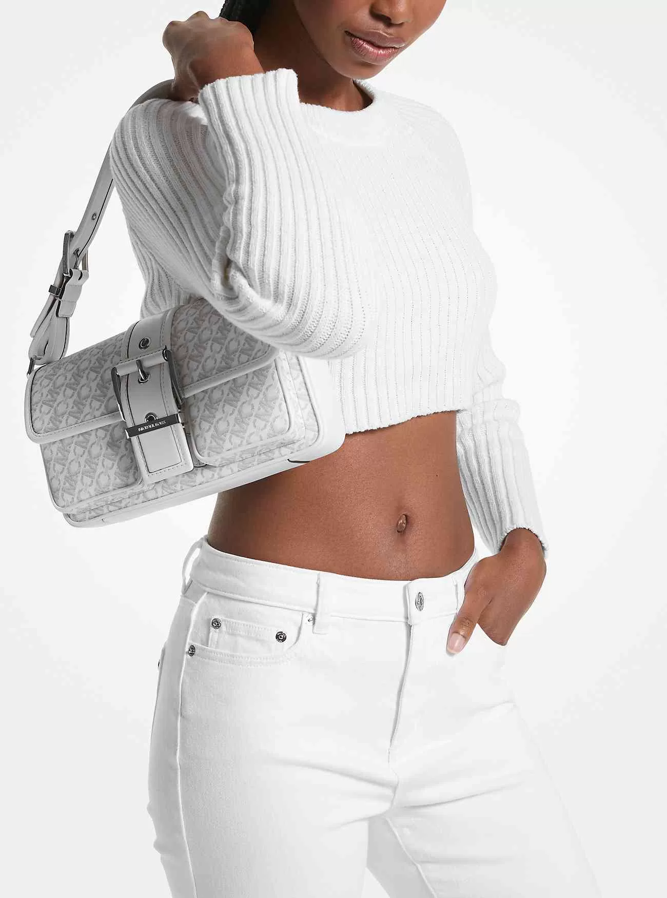 Den moderna men ändå klassiska Colby-axelväskan framkallar en cool, New York-inspirerad känsla. Med sin eleganta rektangulära siluett och djärva spänneaccent är den här chica stilen tillverkad av Empire Logo print läder och designad för att vila sömlöst under din arm. Matcha dina smycken till den silverfärgade hårdvaran.