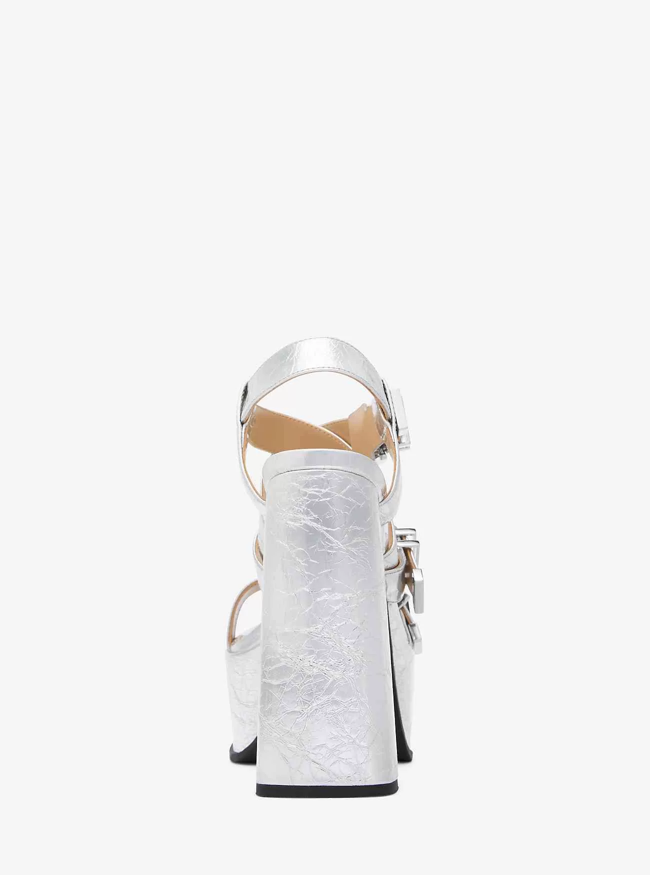 Vänd på huvudet i vår Darrington-plattformssandal. Den här skyhöga läderstilen definieras av en metallisk, krackelerad finish och kombinerar en skyhög häl med polerade spännen inspirerade av en arkivdesign. De kommer att få dig att klä dig från fötterna och upp.