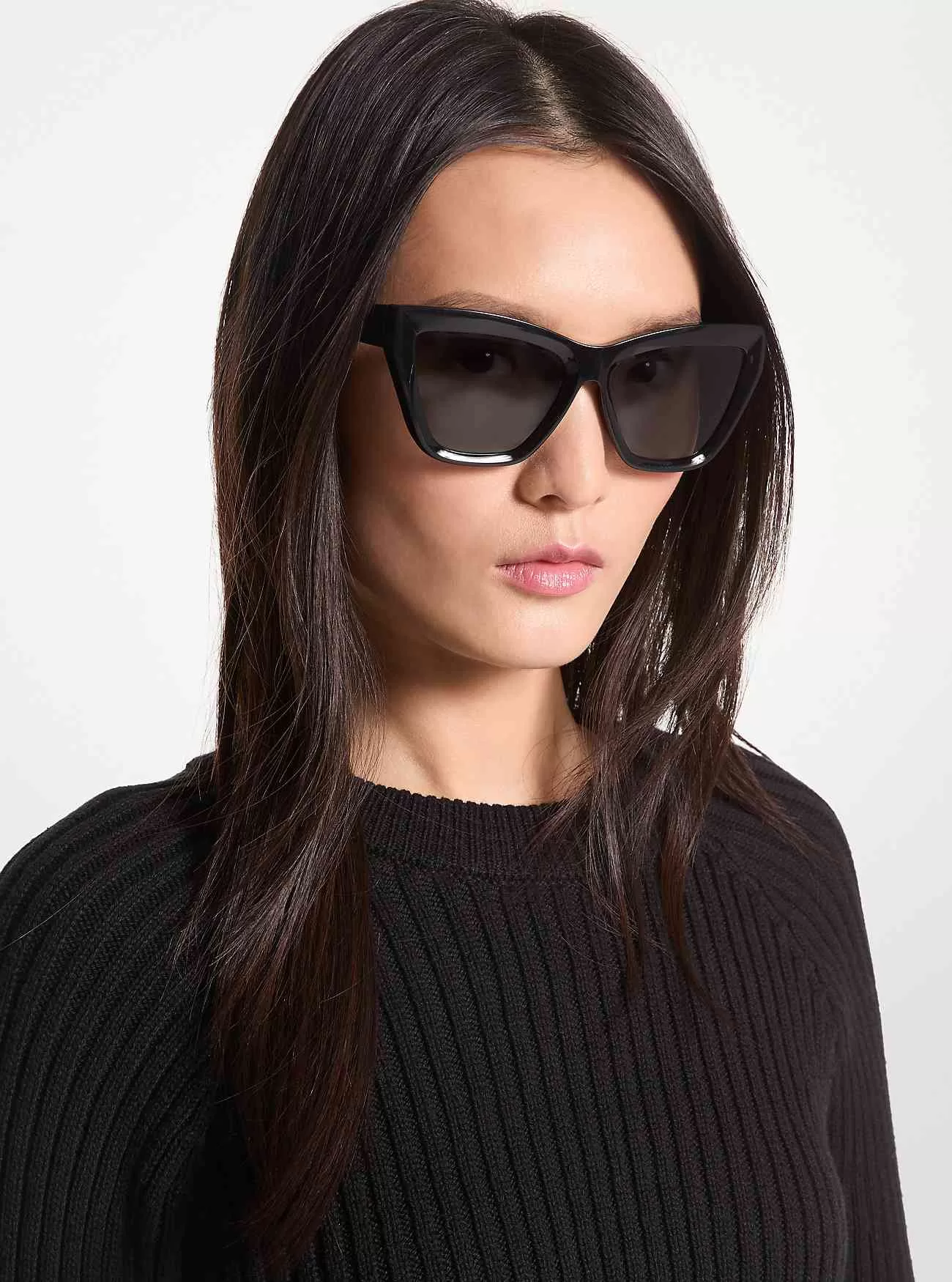 Våra Dubai-solglasögon har en modern cat-eye-form som omedelbart kommer att förvandla din look. Tjocka armar etsade med vår logotyp lägger till den sista finishen. Prova dem med säsongens Signature-separationer.