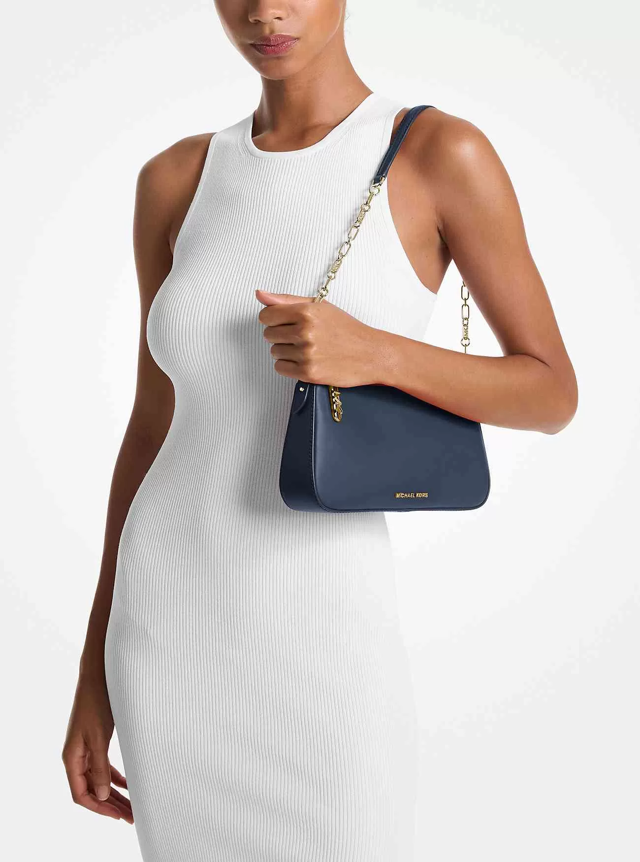 Empire pochette-väskan är en väsentlig vardag – och symbolen för tidlös sofistikering. Tillverkad av slätt läder, den kompakta silhuetten passar din telefon, korthållare, solglasögon och det lilla extra. Matcha resten av dina tillbehör till den guldfärgade kedjeremmen.