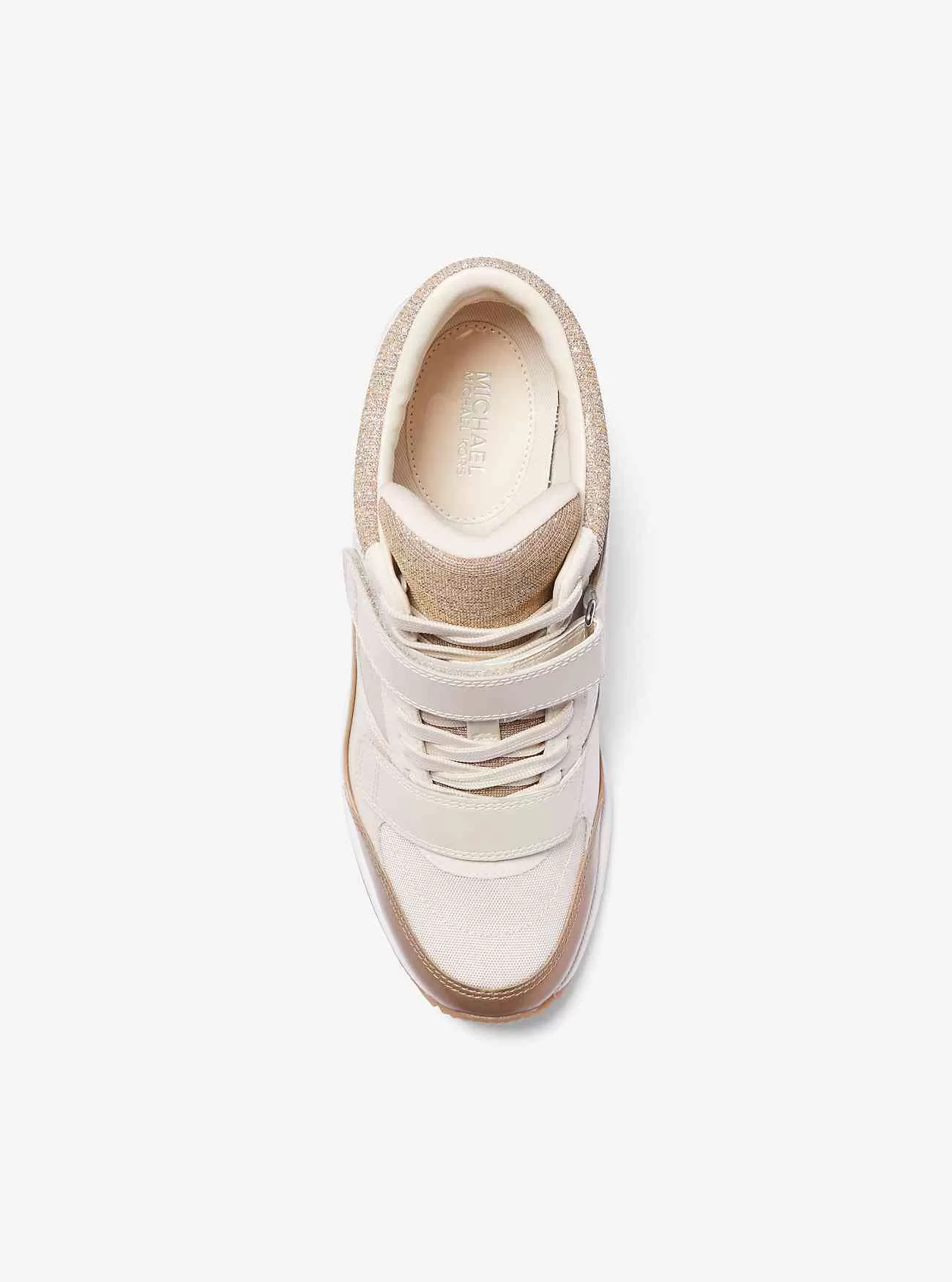 Vår Gentry-sneaker kombinerar komforten hos en sneaker med höjden på en kilklack. Tillverkat av paneler av läder och glitterkedjenät, har detta snörningspar en gummisula, en metallisk häl och dubbla remmar för en tät passform. Bär den för att ge off-duty-looken en stämpel av sport-luxe cool.