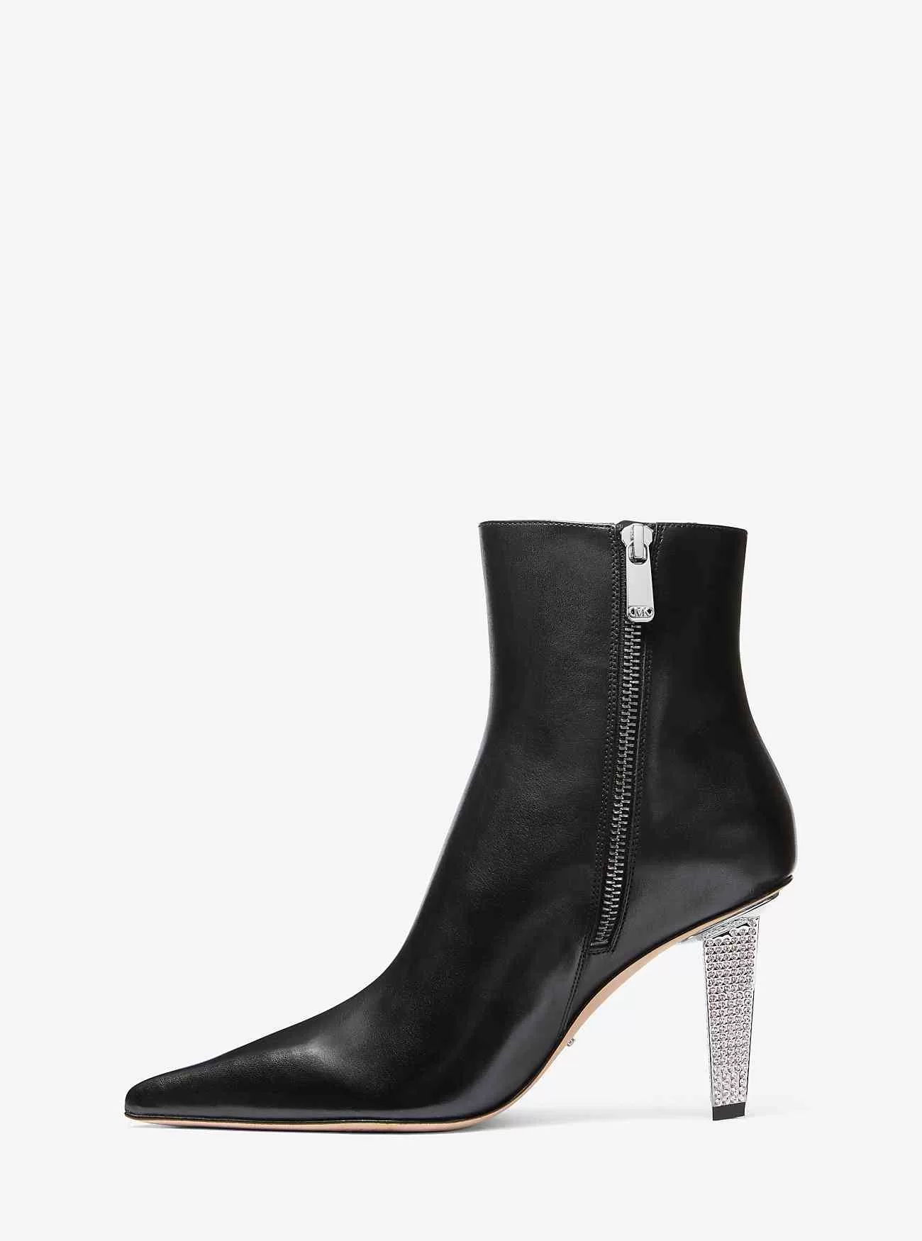 Vår Halle-känga är definitionen av chic. Designad i smidigt läder, den har en spetsig tå, kristallprydd häl och stängning med dragkedja i sidan. Bär den för att vässa vardagens utseende, från kontoret till efter timmar.
