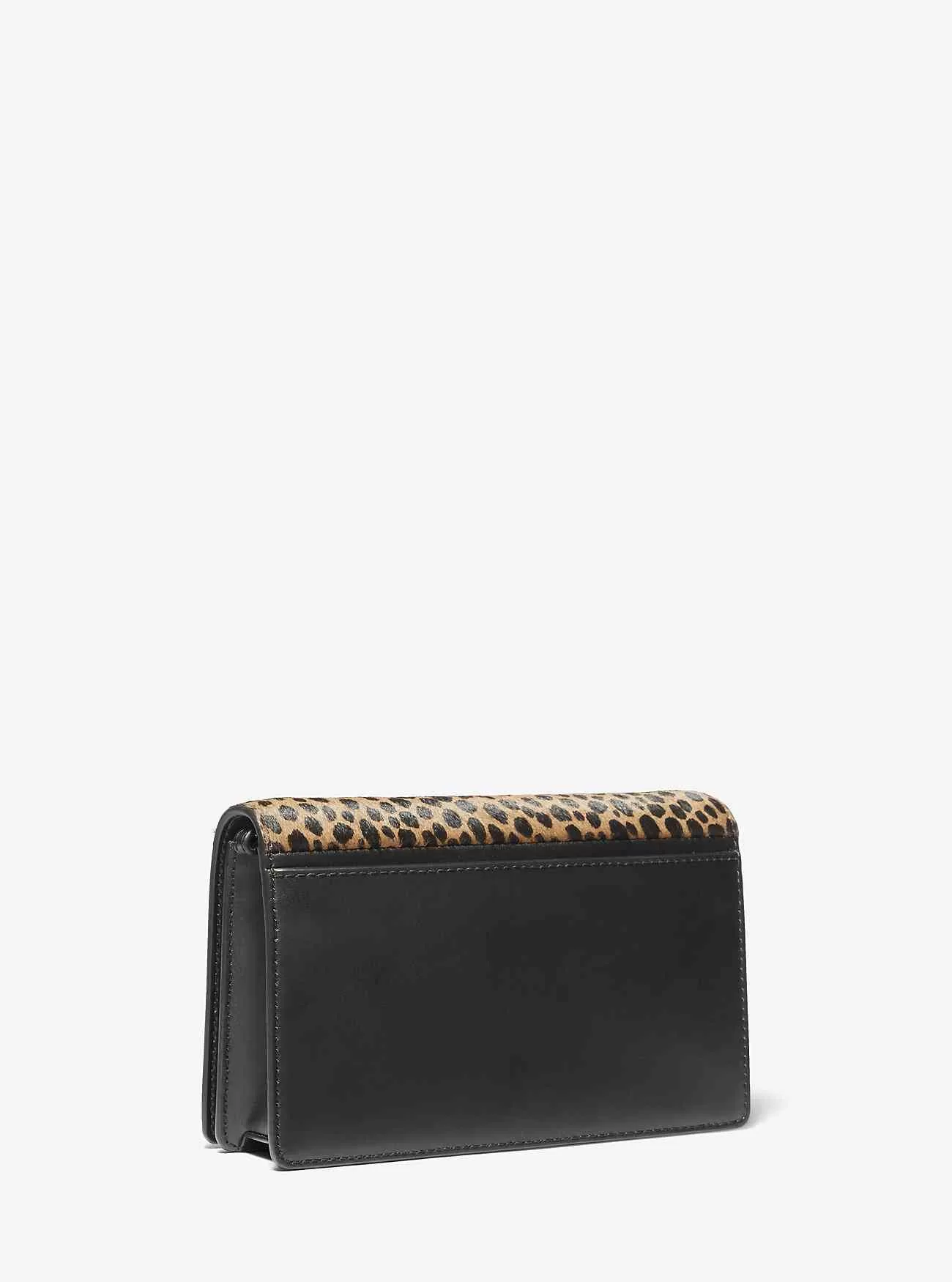 Jet Set crossbody är tillverkad av kalvhår med gepardtryck och avslutad med en glänsande kedjerem, en idealisk resesällskap. Den smala siluetten är väl tilltagen för att bära dina vardagliga saker och har ett invändigt blixtlåsfack och flera kortplatser för att hålla dig organiserad. Ta bort remmen för att bära den som en chic clutch.