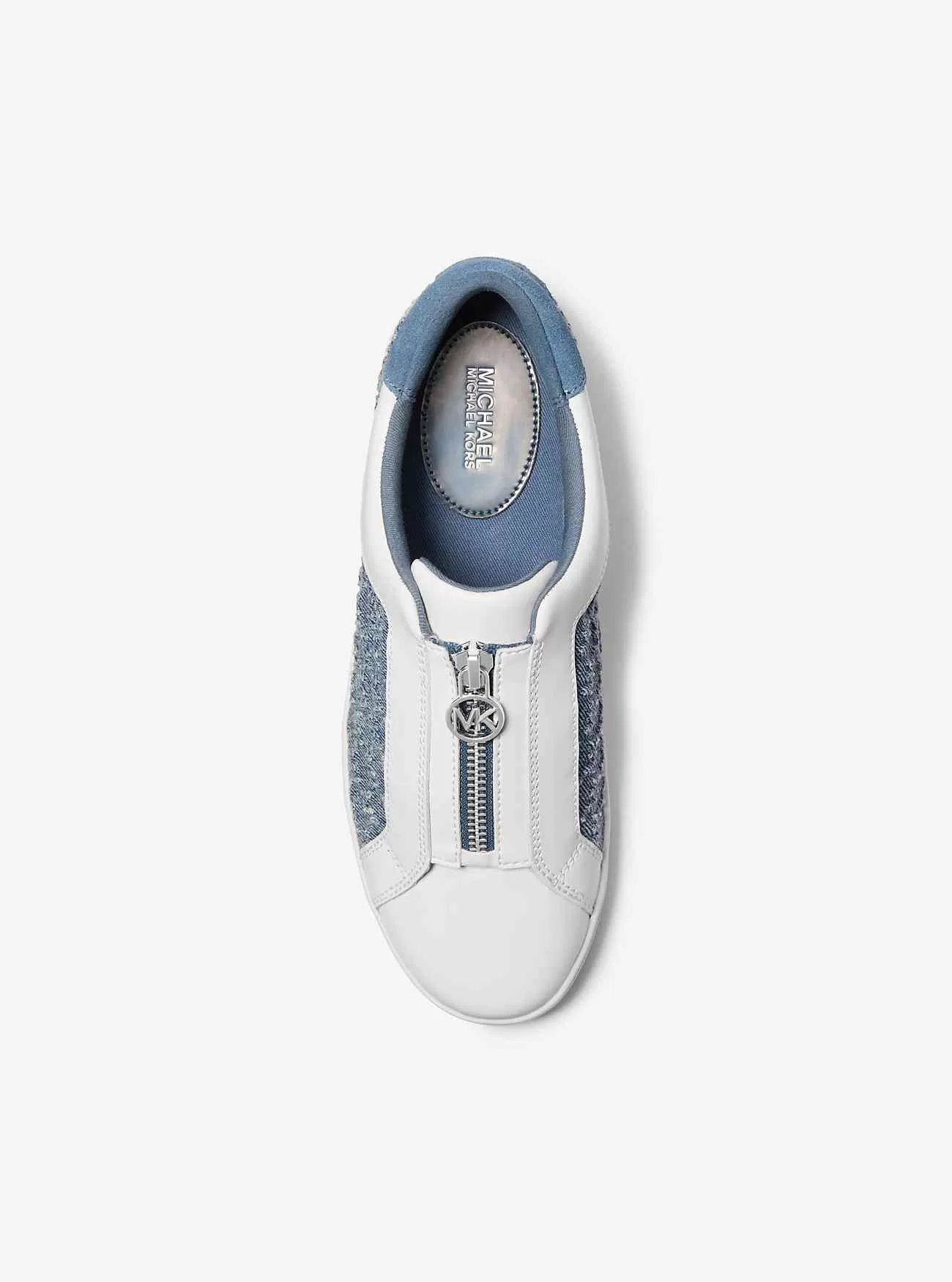 Uppdaterad med en praktisk och snygg detalj med blixtlås, vår senaste Keaton sneaker är ett klassiskt par som du kommer att nå ofta. Den signaturpräglade denim- och lädersilhuetten har lätt vadderade innersulor för komfort, medan gummisulorna kommer att greppa slanka stadsgator. Visa upp dem med beskurna jeans och minifåll.