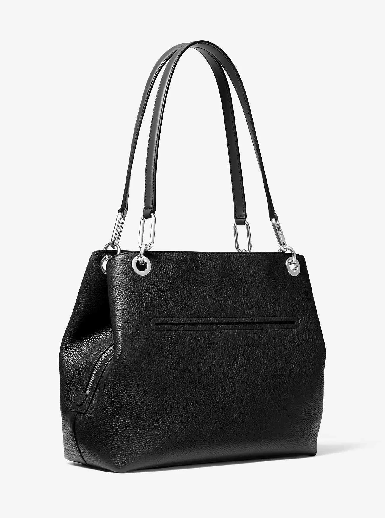 100 läder från garverier som uppfyller de högsta standarderna för miljöprestanda Tygväska Pebbled läder 100 läder Silvertone hårdvara 125W X 1025H X 55D Handtag drop 105 Exteriör detaljer bakficka med dragkedja Inre detaljer bakficka med dragkedja mittfack med dragkedja framficka med dragkedja Foder 100 polyester Dupsnap-väska ingår inte Importera