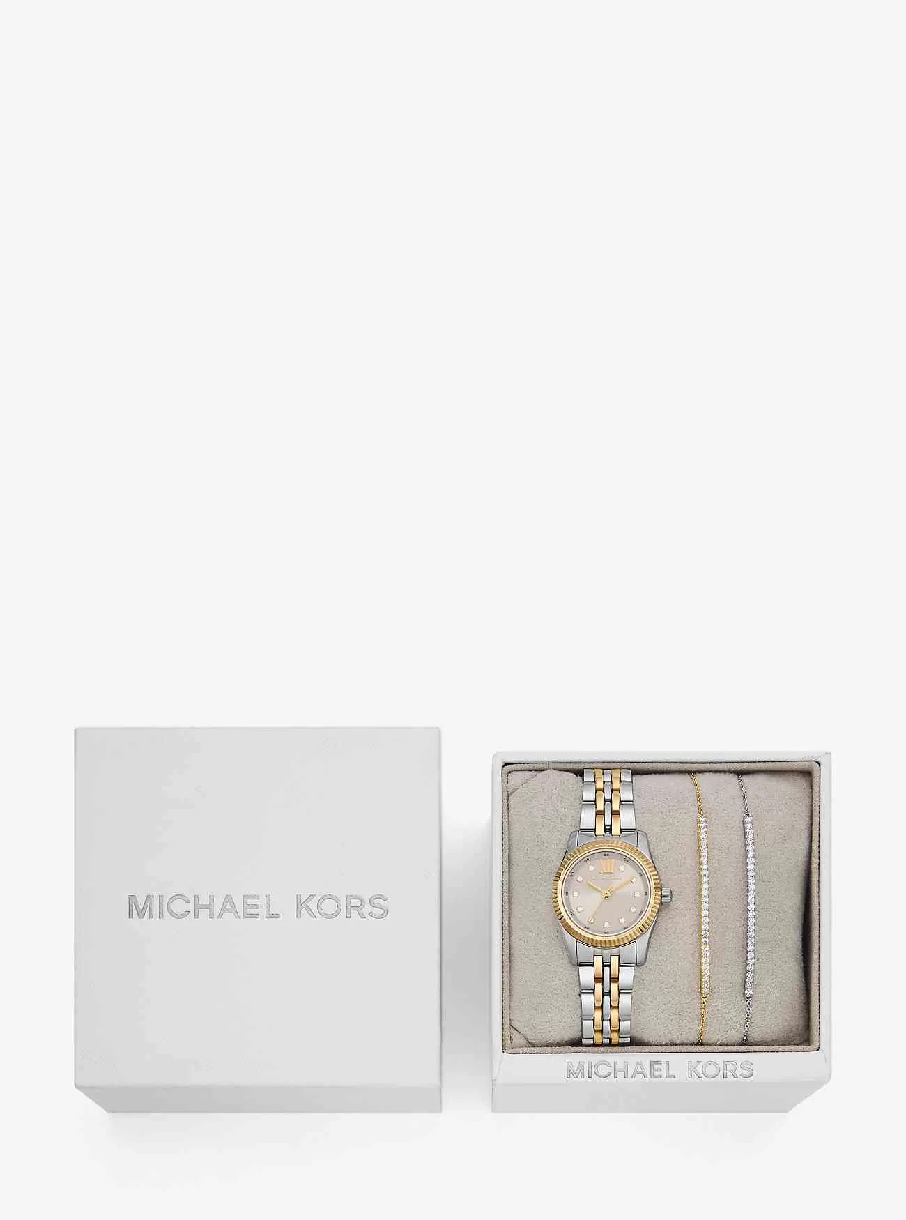 Lexington Pavé Tvåfärgad klocka och skjutarmbandspresentset