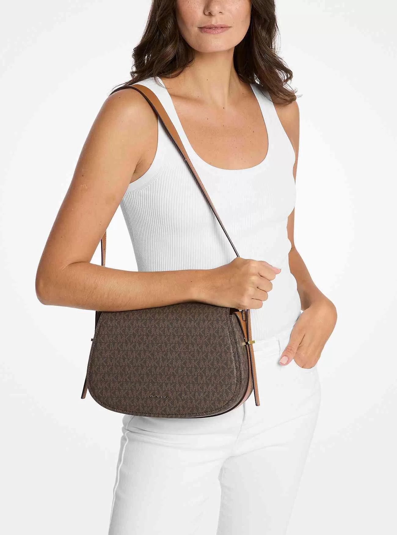 Gör rörelser med Lydia, en väska med signaturtryck designad i en elegant, böjd siluett. Komplett med en inredning av canvas-linne, den har gott om plats för vardagliga saker, inklusive din plånbok, nycklar och smartphone. Den långa axelremmen kan justeras till den perfekta droppen.