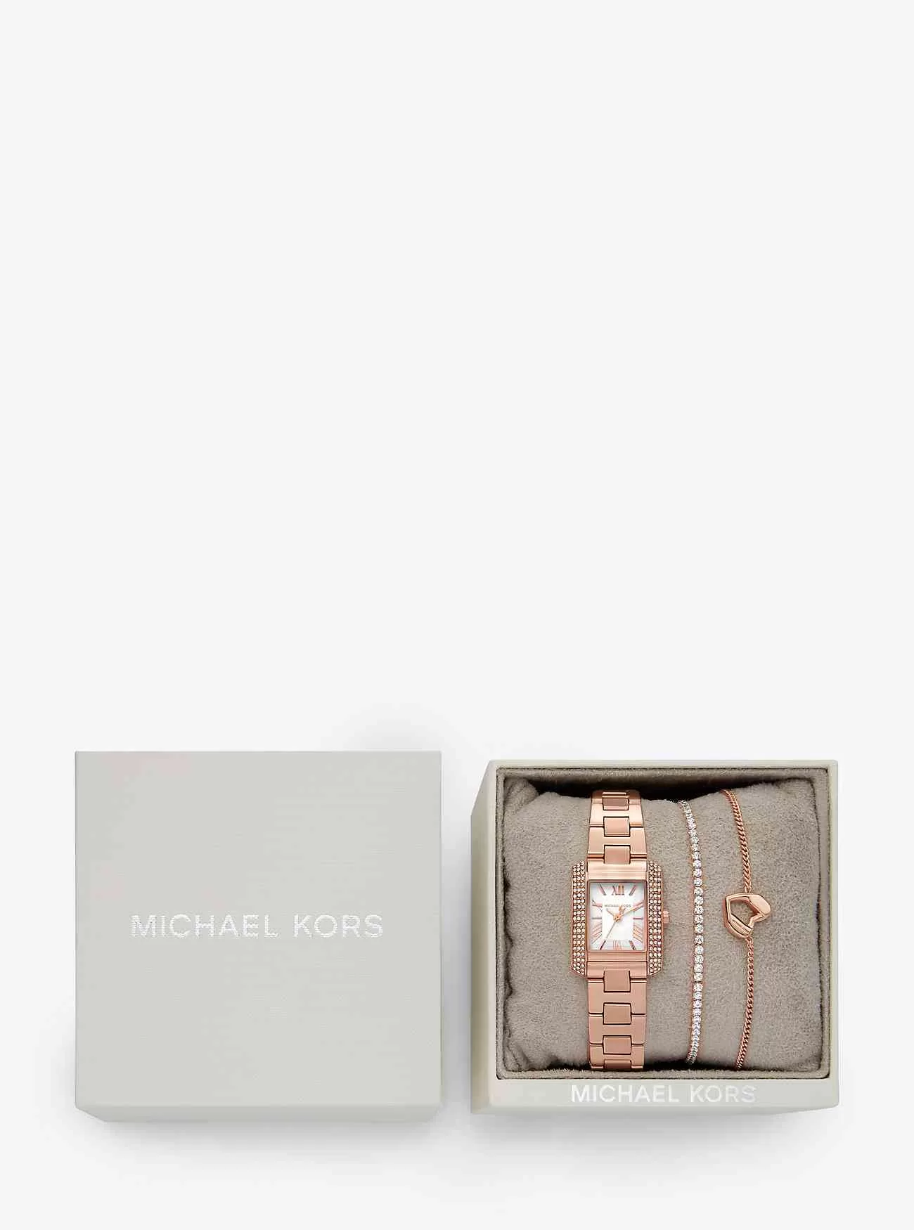 Mini Emery Pavé Rose Gold-Tone klocka och armband presentset