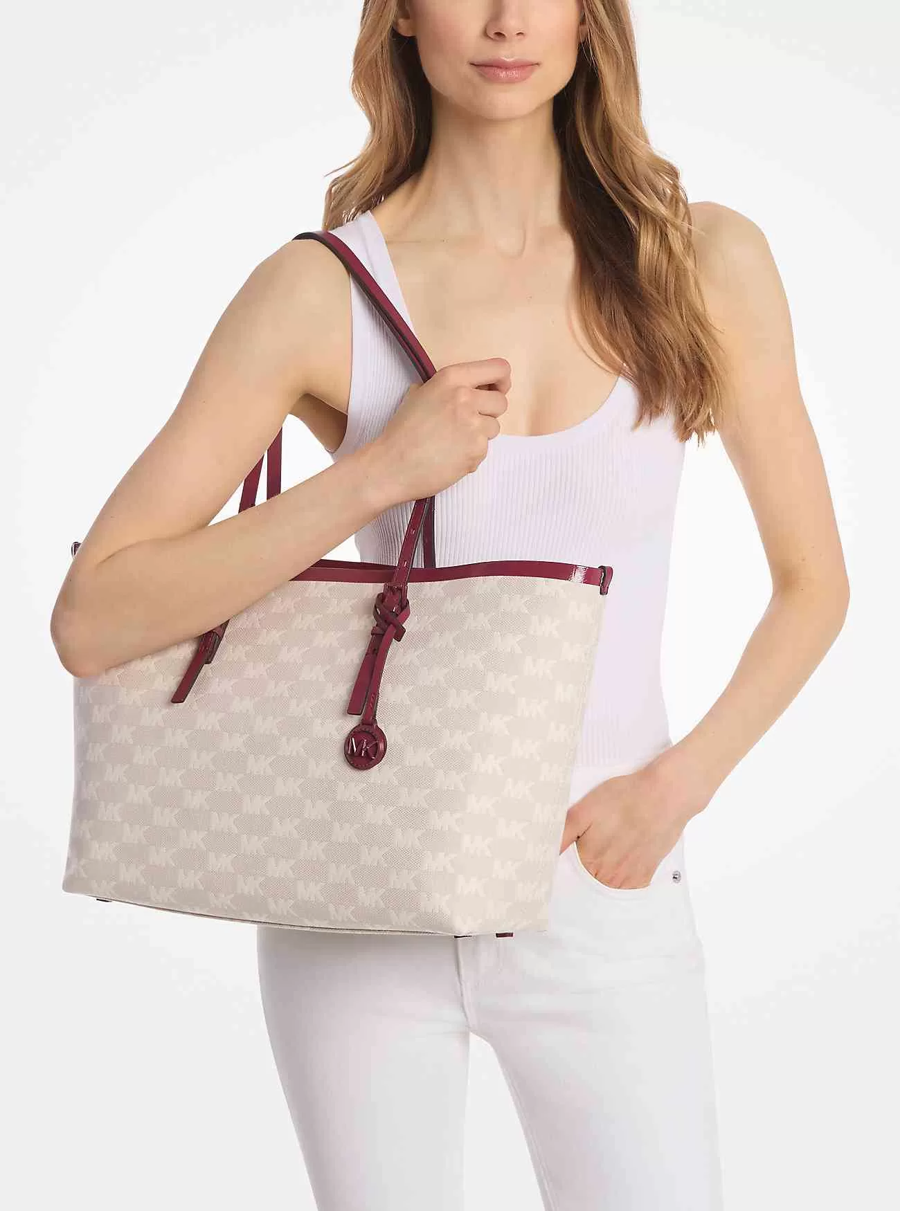 Vår tidlösa Quinn-väska är förberedd för arbete, lek och allt däremellan. Den strukturerade silhuetten är gjord av logotyp jacquard och kantad med slätt läder, vilket bidrar till dess klassiska attraktionskraft. Förvara allt från pendlarskor till din bärbara dator i dess rymliga inre fack.