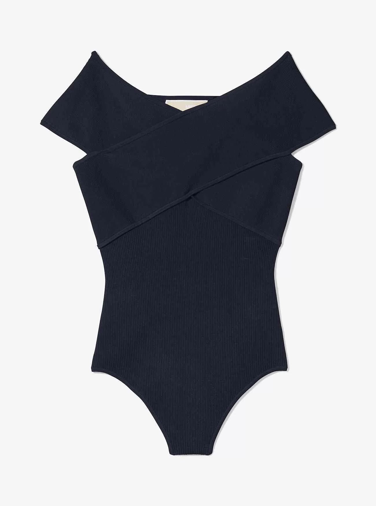Den här bodyn är designad för en andra hud passform, så den kommer att se sömlös ut instoppad i kjolar eller jeans. Tillverkad av en stretchinfunderad återvunnen viskosblandning, den har en lockande crossover-ringning som sitter utanför axlarna. Styla den med en jeanskjol, platta sandaler och ringörhängen för att gå från dag till natt.