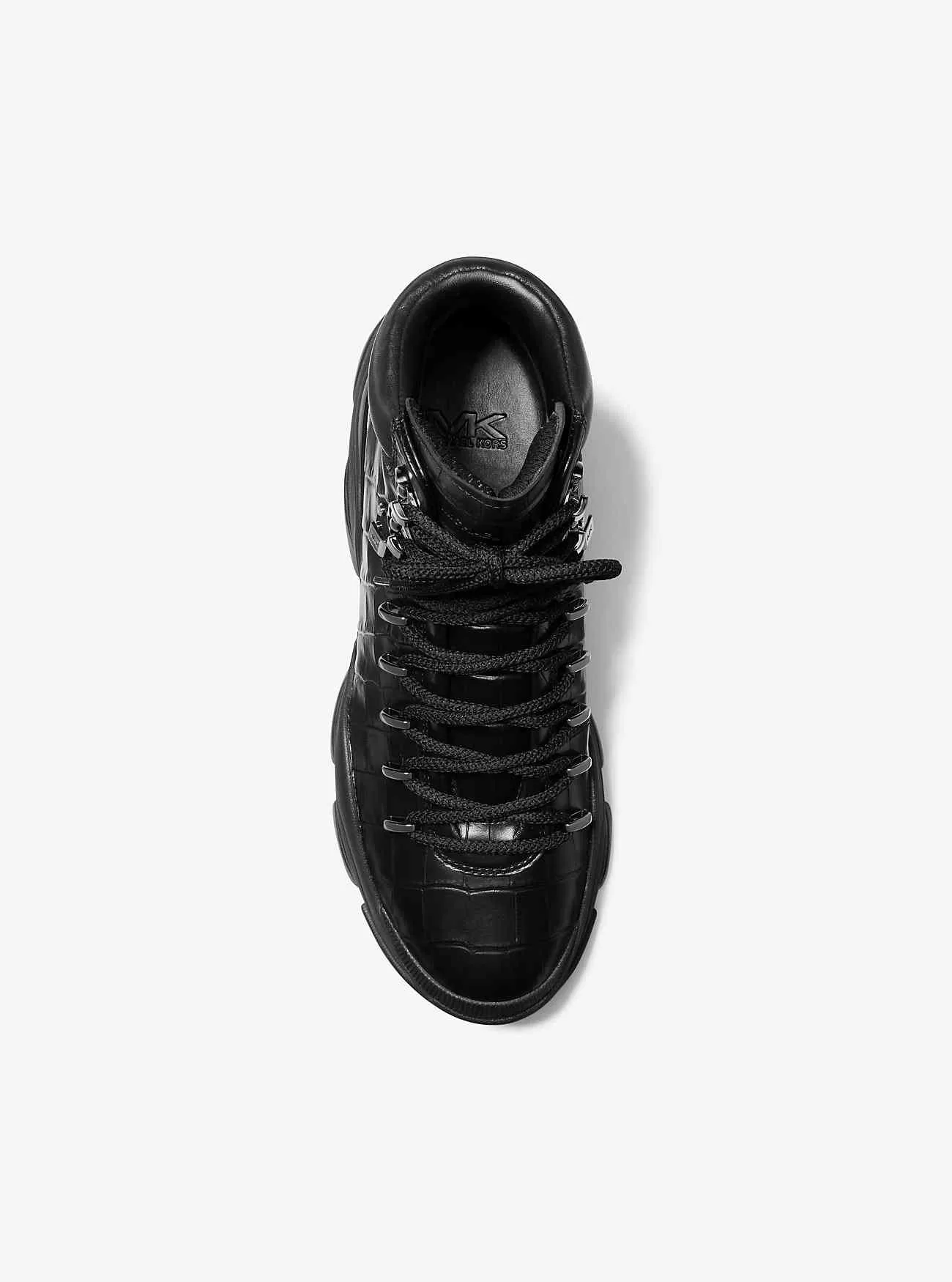 Atlas-kängan är en utilitaristisk siluett med stadslack och är en modern klassiker. Tillverkad av krokodilpräglat läder och placerad på en tjock gummisula, är den här high-top-stilen på en gång ett statement och en mångsidig garderob. Bär dem med allt från jeans till joggingbyxor.