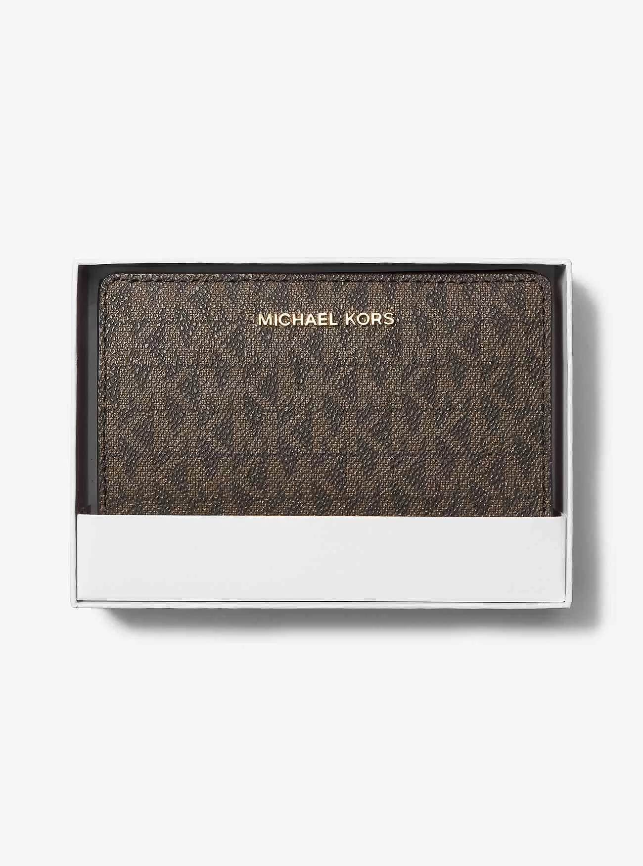 Plånbok Logoprint canvas 894 belagd canvas 96 polyester1 polyuretan Goldtone hårdvara 525W X 35H X 15D Exteriördetaljer bakficka med dragkedja Interiördetaljer bakficka 6 kortplatser ID-fönster Foder 100 polyester Snäpplås Importerad