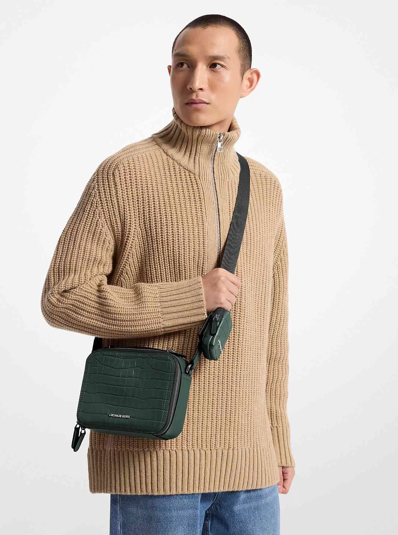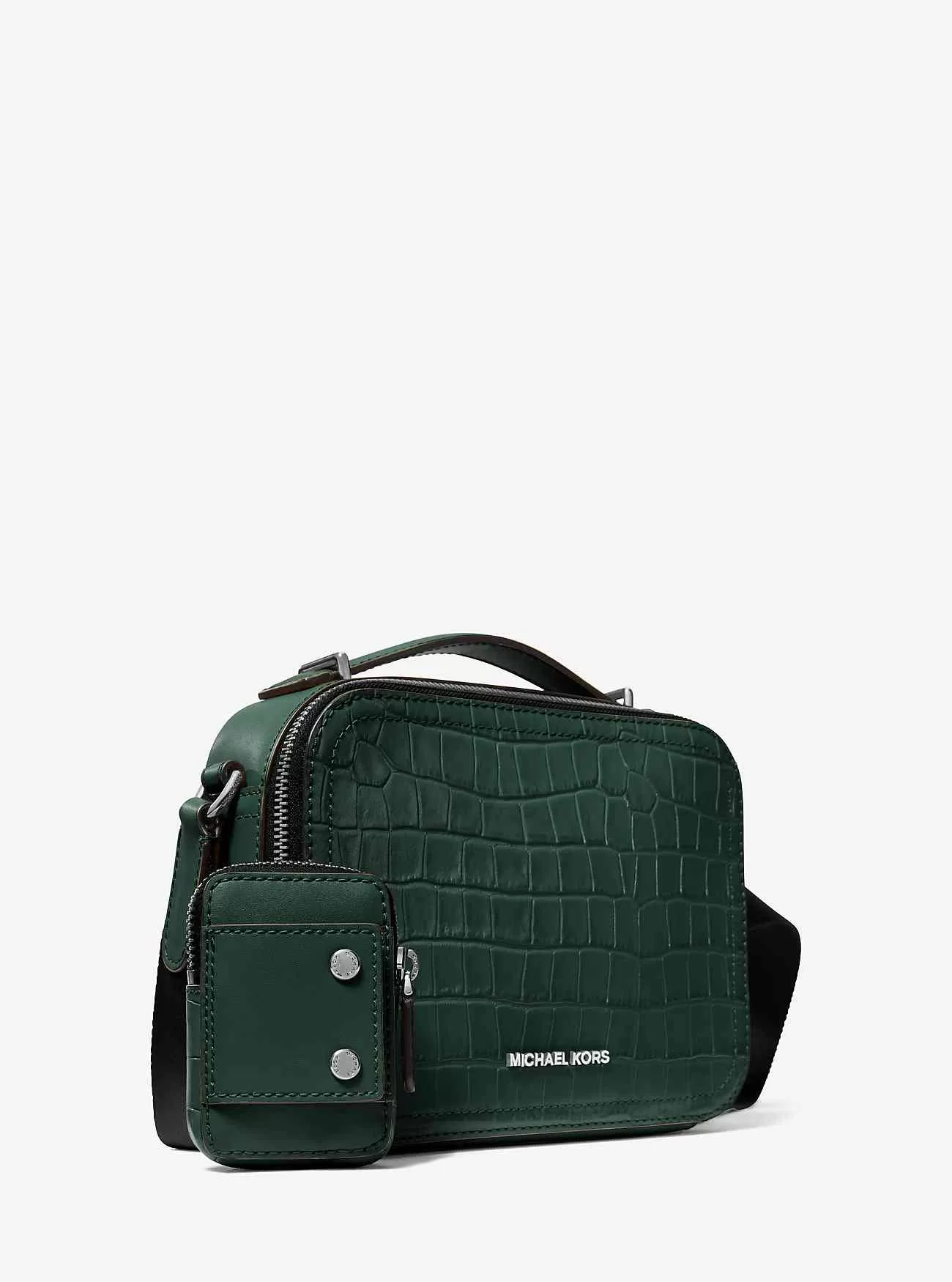 Oavsett om du reser eller bor lokalt är vår Hudson crossbody-väska klar för uppgiften. Den är gjord av krokodilpräglat läder i en mjuk strukturerad siluett med dubbel dragkedja för säker förvaring. Knäpp fast den medföljande telefonfickan på den justerbara remmen för att hålla din smartphone inom räckhåll.