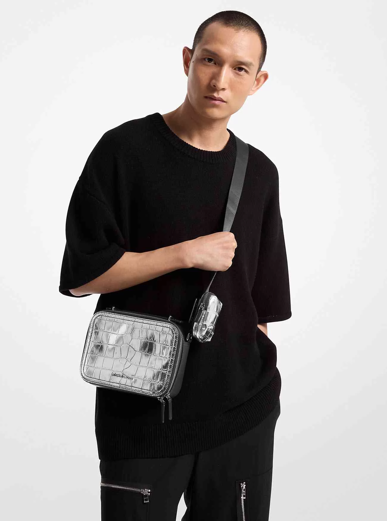 Hudson Crossbody-väska i metallisk krokodilpräglad läder