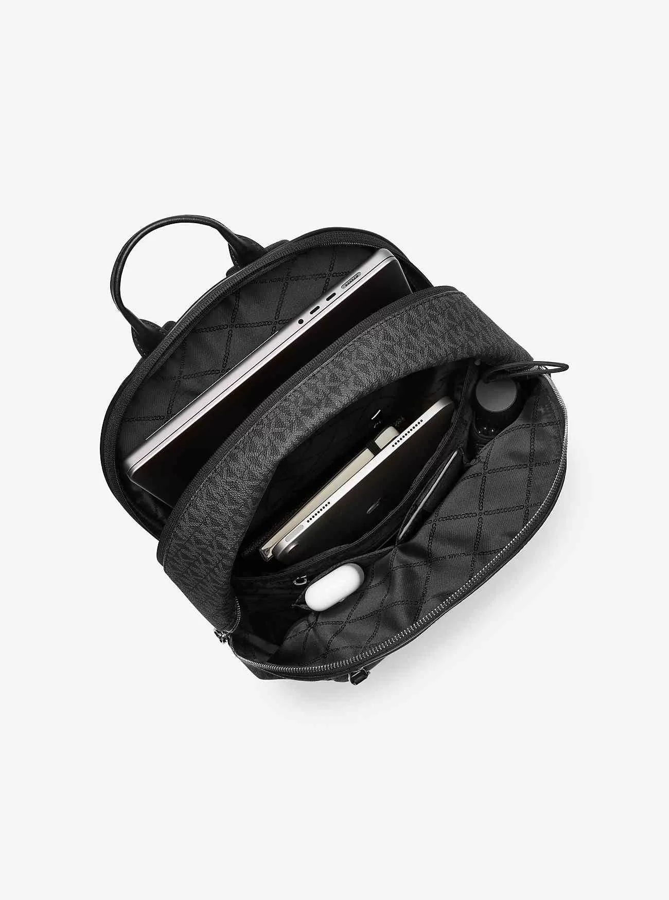 Vår Hudson-ryggsäck är tillverkad av signatur-logotryckt canvas med läderkanter och är den perfekta blandningen av stil och användbarhet. Dess rymliga interiör har ett laptopfack, medan de yttre fickorna med dragkedja ger enkel åtkomst till din telefon, plånbok och nycklar. Justera axelremmarna för perfekt passform.