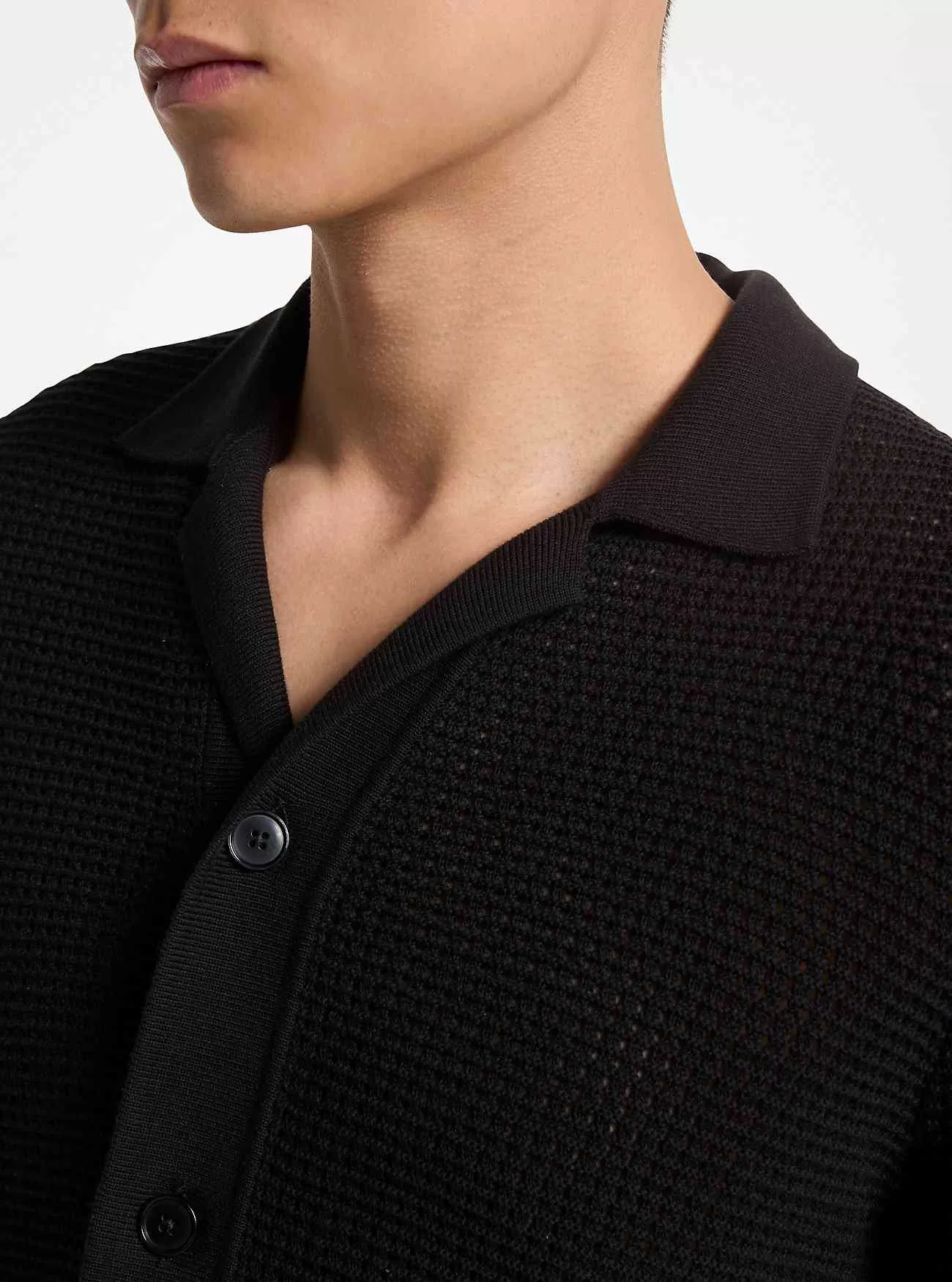 Vi tog den kragade skjortan och gjorde den mer sommarvänlig i en öppen sticka. Den luftiga designen i bomull kommer att se dig genom alla typer av tillfällen i varma väder. Lägg det över ett linne på en restaurang eller musikfestival.