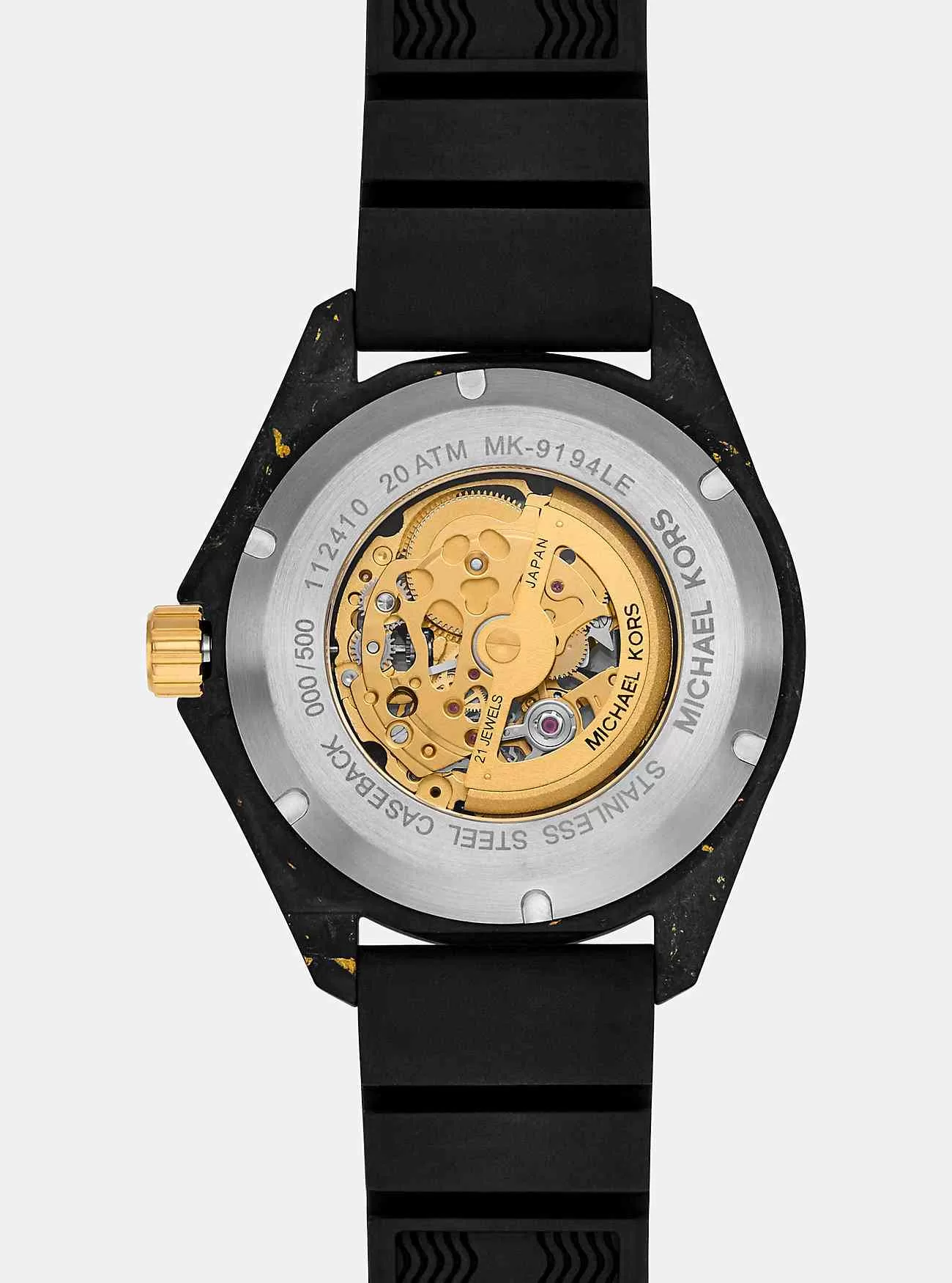 Överdimensionerad klocka Rostfritt stålsilikon Blacktonegoldtone hårdvara Överdimensionerad 44 mm väska Automatisk rörelse med 3 hand Spännefästning Vattentät upp till 20 ATM 2 års garanti Importerad