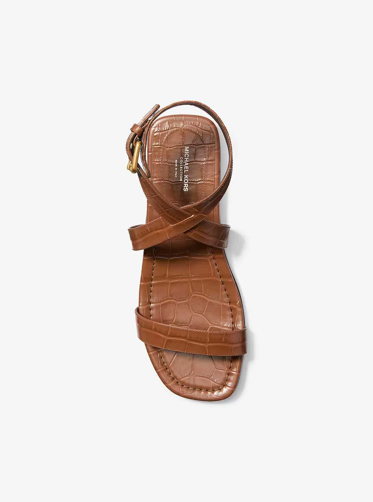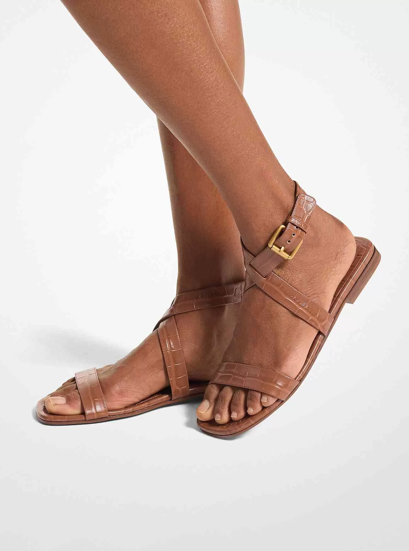 En omedelbar ikon, våra Bridgette-sandaler kommer att ge alla varmvädersensemble en raffinerad känsla. De har tjocka, krokodilpräglade läderremmar som korsar vid ankeln, de är avslutade med ett polerat spänne och en låg staplad häl. Styla dem med allt från övergångsstickor till förhöjda slipklänningar. Tillverkad i Italien.