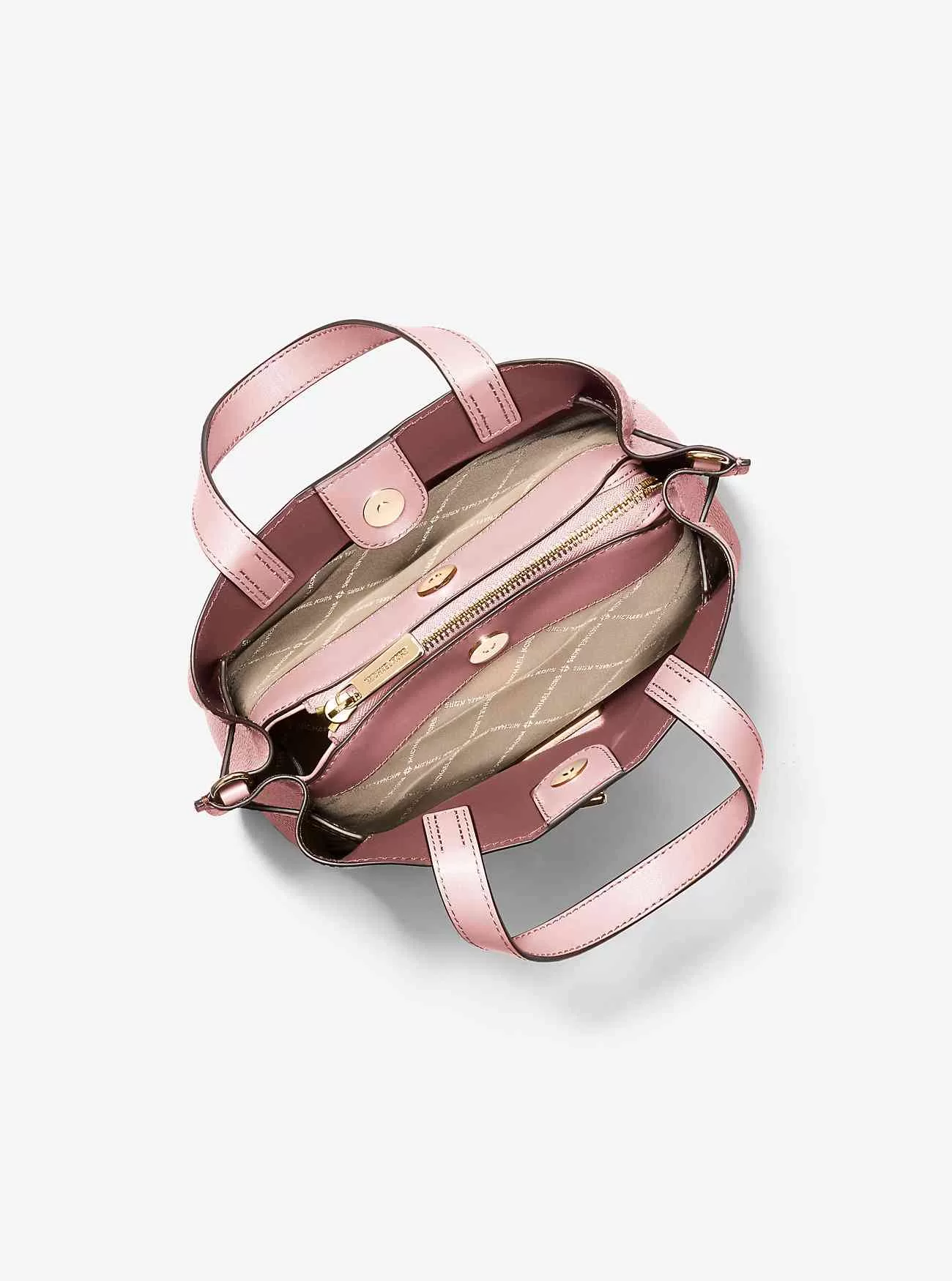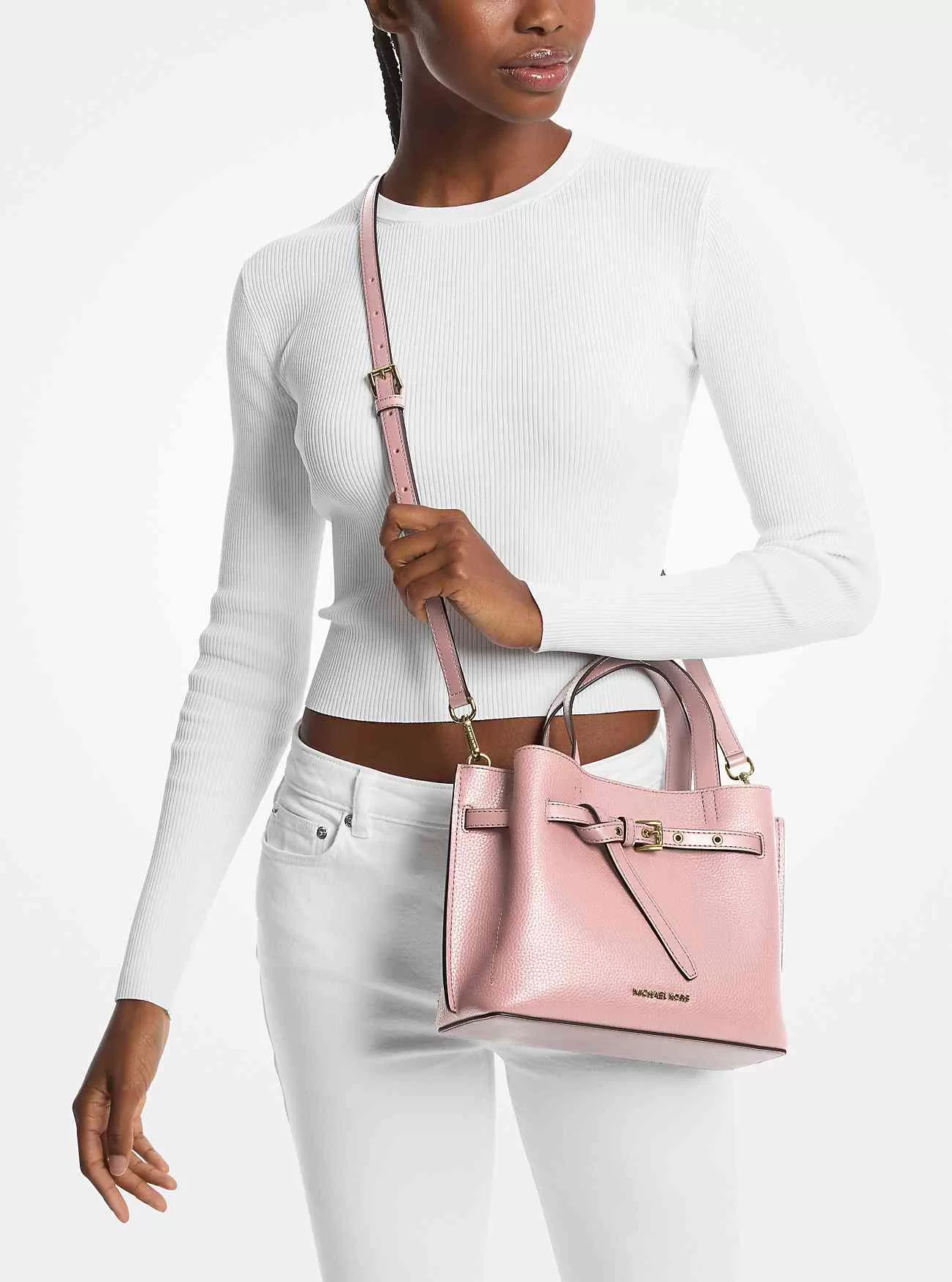 Var som helst, när som helst – vår Emilia-väska jobbar hårt och läser chic. Denna vardagliga handväska är elegant strömlinjeformad och tillverkad av läder med småsten, designad i en stor siluett som präglas av en siluett med bälte och guldfärgad hårdvara. Lossa crossbody-remmen för att bära din i de övre handtagen.