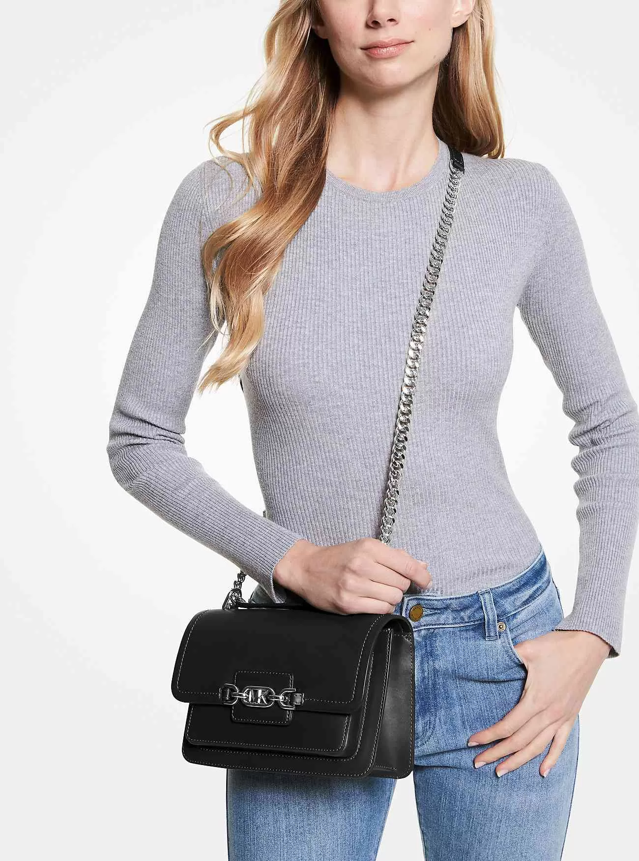 En smart och polerad pjäs för varje dag, denna Heather-axelväska i läder är designad i en modern vikbar siluett med märkesvaror för en ny finish. Den har perfekt storlek för att passa dina dagliga saker, med invändiga fickor för att stoppa in din telefon och kortfodral.