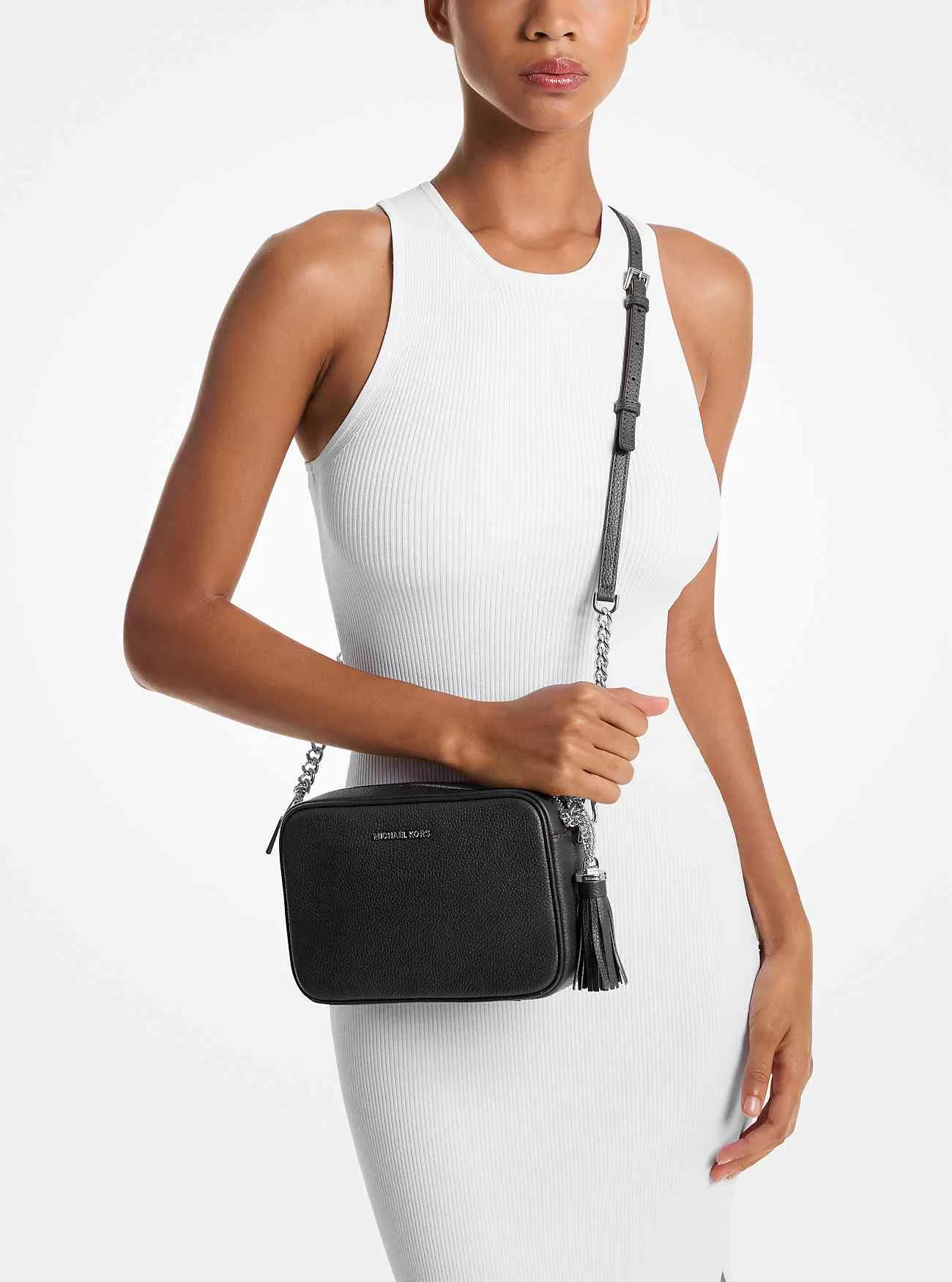 Jet Set crossbody-väskan är den perfekta balansen mellan diskret och lyxig, med en lätt strukturerad men ändå kompakt design som är framställd i stenigt läder. Färdig med kedjelänkade accenter och en överdimensionerad tofs, är denna vardagsfavorit ett enkelt sätt att lyfta vilken outfit som helst.