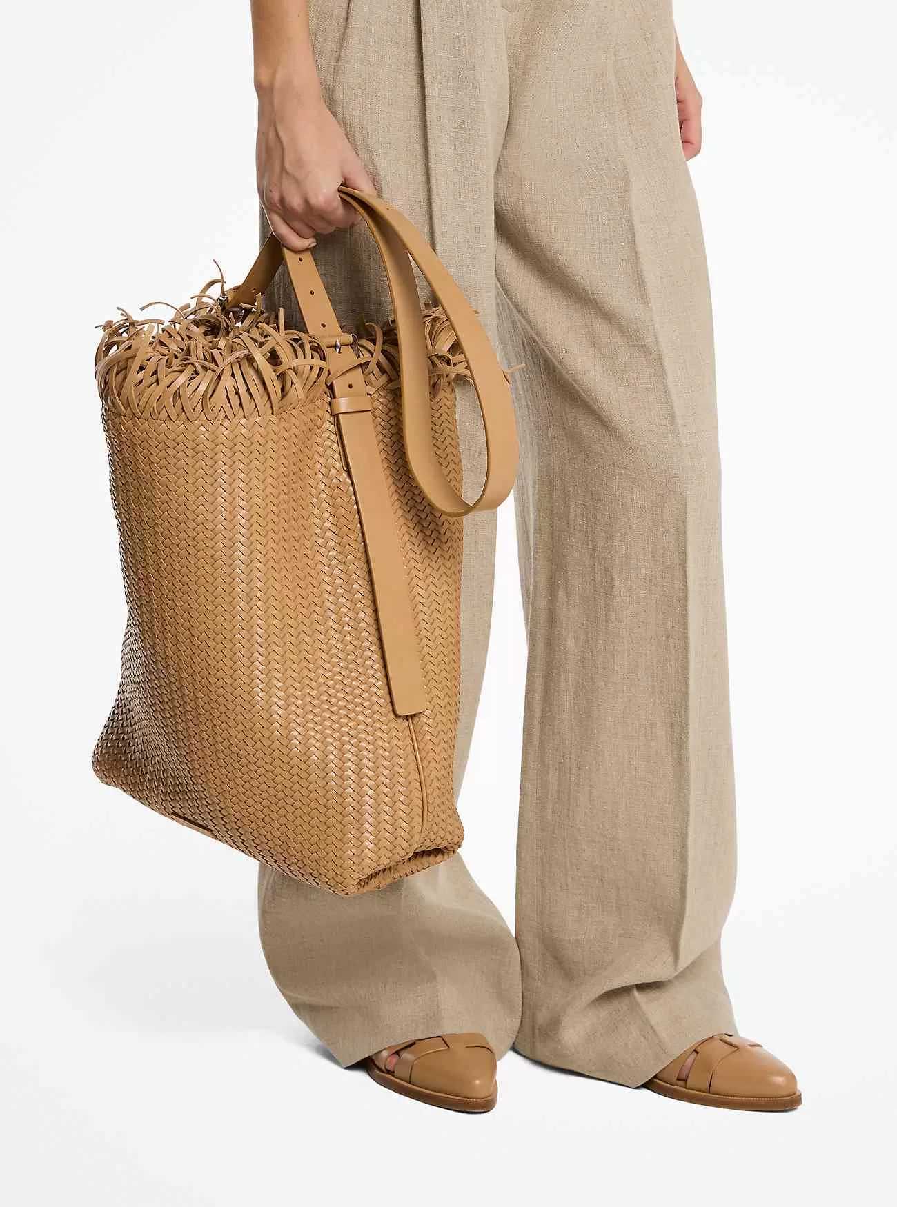 Kiera luffarväska är en mästerklass i utsökt italienskt hantverk, som den kan ses på vår/sommar 2025-banan. Intrikat skurna remsor av smidigt kalvläder är handvävda tillsammans och visar upp en hantverksmässig finish, medan känsliga fransar längs toppen skapar lekfull rörelse. Designad med en tjock, justerbar rem med dubbelt spänne, utstrålar detta lyxiga tillbehör säsongens obehagliga sofistikering. Styla den med en slarvig trench och flytande shorts för att komplettera det varma vädret.