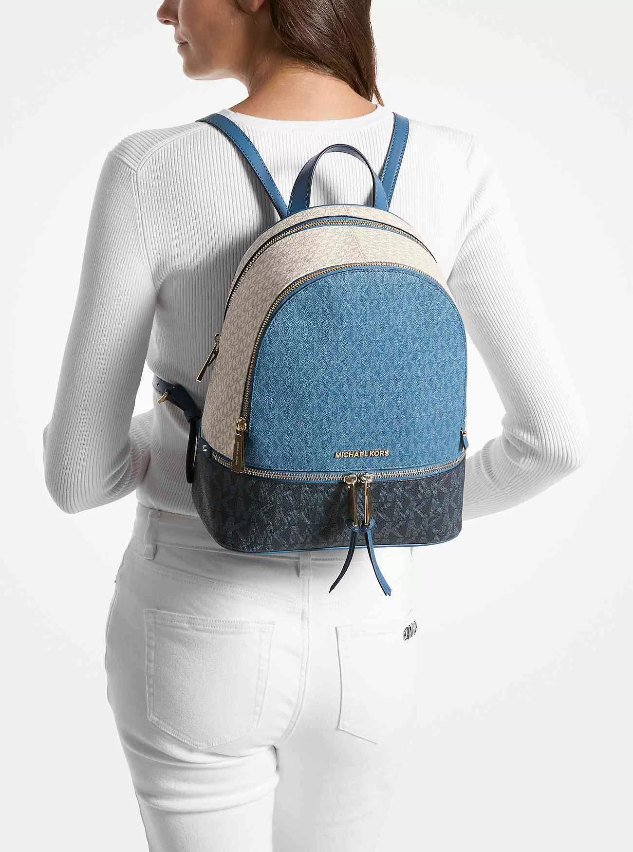 Avslappnad men ändå lyxig, vår Rhea-ryggsäck omdefinierar storstadstillbehör. Vi älskar kombinationen av färgblockerad kypert med logotyptryck och polerad hårdvara. Med sina flera blixtlåsfickor och ömtåliga axelband är det en snygg uppdatering av den hållbara designen.
