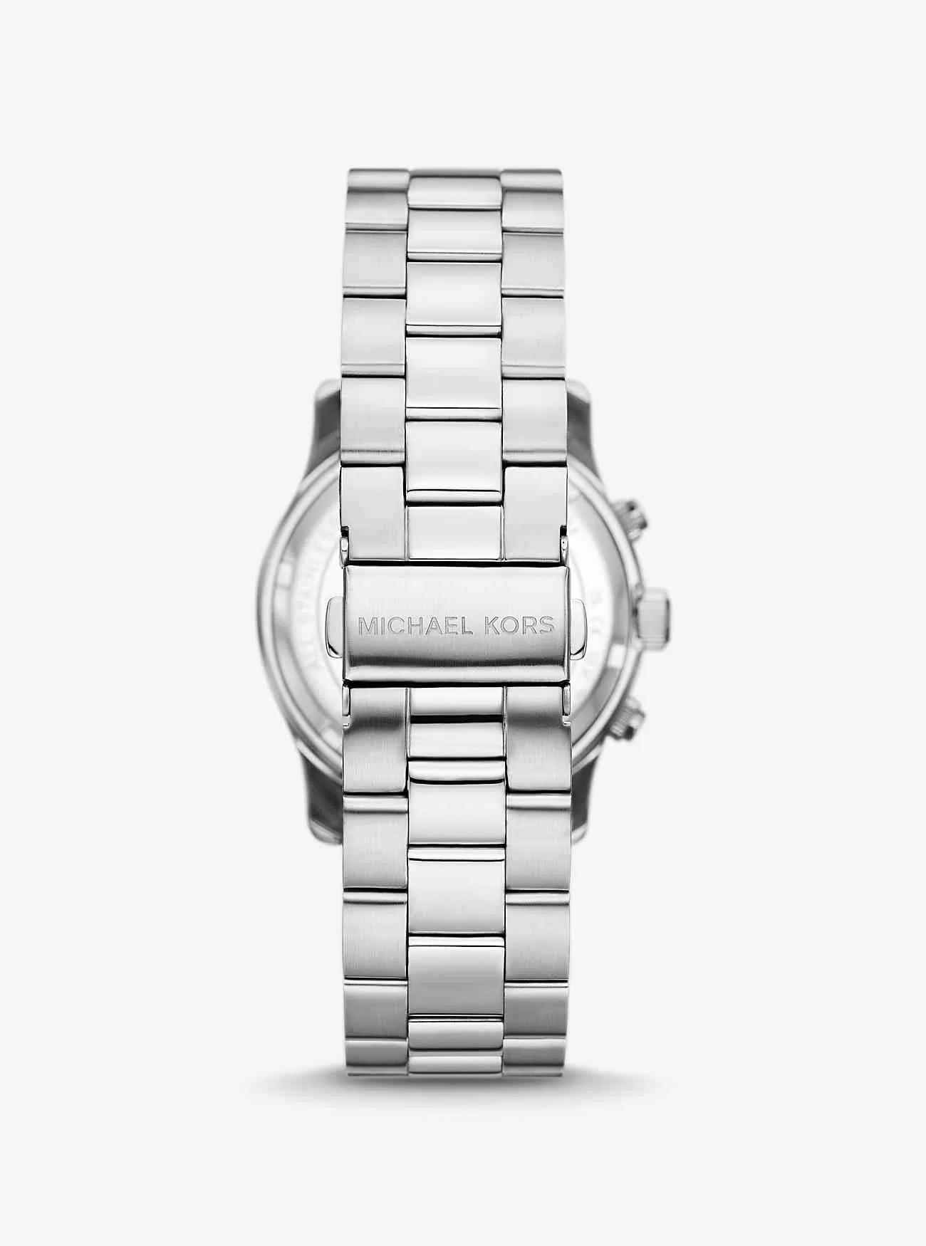 Den perfekta pricken över i:et till varje outfit, vår nya Runway-klocka kommer att vara en favorit i många år framöver. Uppdaterad med upphöjda sub-urtavlor, den här eleganta stilen är gjord av silverfärgat rostfritt stål med en polerad armbandsrem och har kronografdetaljer för exakt tidtagning.