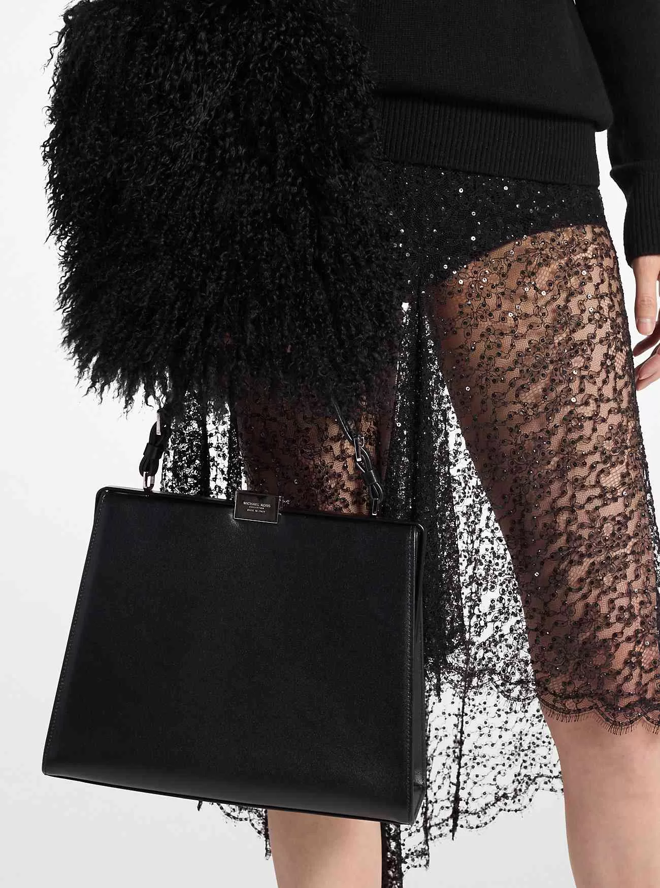 Bilden av polerad glamour. Simone-väskan är tillverkad i Italien av rikt kalvskinn i en strukturerad siluett med topphandtag med diskret hårdvara. Bär den mot både dag- och kvällsensembler för en damliknande finish.